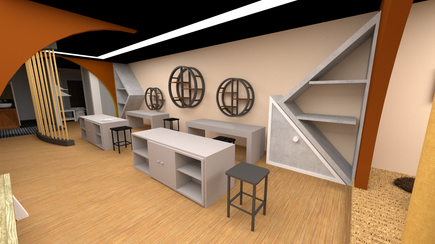 THE PERFORMANCE STAGE AND AUDIENCE SEATS IS MY MAJOR SPACE. THE MAIN MATERIALS THAT I HAVE USED ARE MDF BOARD, MODELLING BOARD, BALSA WOOD STICK, PLASTIC STICK, BLACK PVC AND I LASER CUT THE WALL / WINDOW AND ENGRAVED THE TEXTURE.